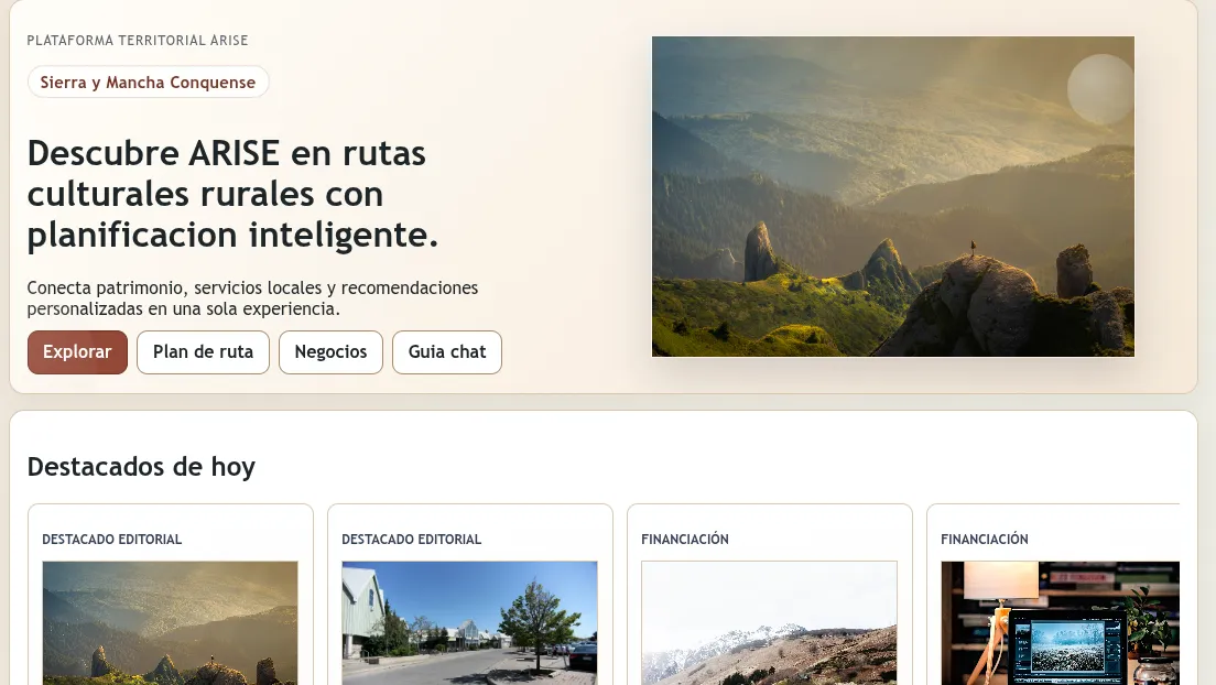 ARISE - Archaeological Routes for Inclusive Synergy & Entrepreneurship in Sierra y Mancha Conquense - has reached an important mid-term milestone with the launch of its public digital platform. Implemented in the Sierra y Mancha Conquense pilot region in the province of Cuenca, Castilla-La Mancha, Spain, the project is developed in the framework of PoliRuralPlus and contributes to the wider objective of strengthening rural-urban linkages through innovation, digitalisation and place-based territorial development.